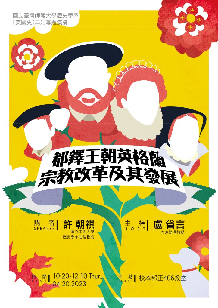 【111-2專題演講】2023.04.20(四) 許朝祺助理教授:都鐸王朝英格蘭宗教改革及其發展 「英國史」(二)課程專題演講講題:都鐸王朝英格蘭宗教改革及其發展主講人:許朝祺(國立中興大學歷史學系助理教授)主持人:盧省言(本系專案助理教授)時 間:2023年4月20日(四) 10:20-12:10地 點:正406教室 Post author:李 文珠 Post published:2023-04-10