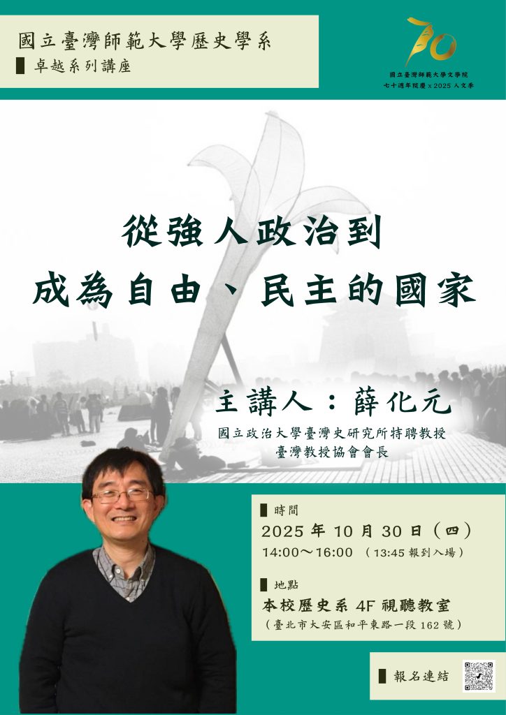 地點:本校歷史系 4F 視聽教室(臺北市大安區和平東路一段 162 號)