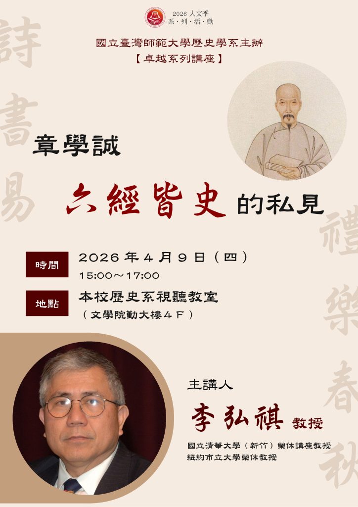 地點:本校歷史系視聽教室(文學院勤大樓 4F)